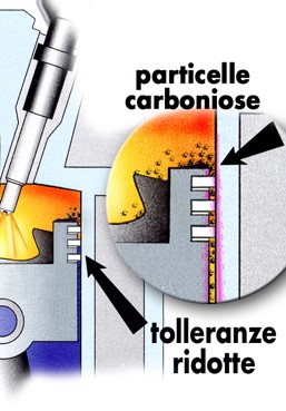 Le particelle sono solidi carboniosi che si posizionano tra le parti metalliche e con i movimenti tra queste vi si può creare usura incontrollata e nei casi peggiori rotture.